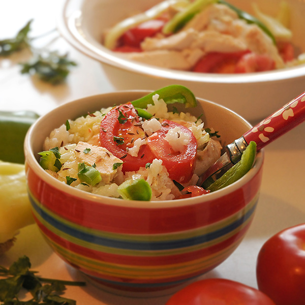 - Sastojci: češnjak / kumin / luk / maslinovo ulje / ocat / paprika / peršin / rajčica / riža / pileća prsa